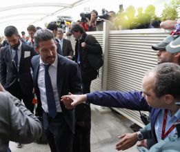 Pasadas las 15:00 h de la tarde, el Atlético llegó al hotel Tiara Park Atlantic de Lisboa recibido por decenas de aficionados que entonaron el himno del club y jalearon al entrenador argentino 'Cholo' Simeone.